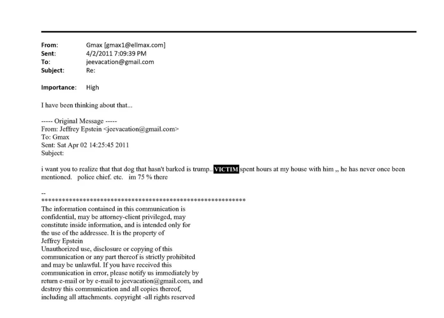 And why did Epstein think it was noteworthy that Trump stayed silent - alluding to “the dog that hasn’t barked” - when Virginia Roberts Giuffre started talking to the media in 2011? Why did that stand out, also, to Ghislaine Maxwell at the time?