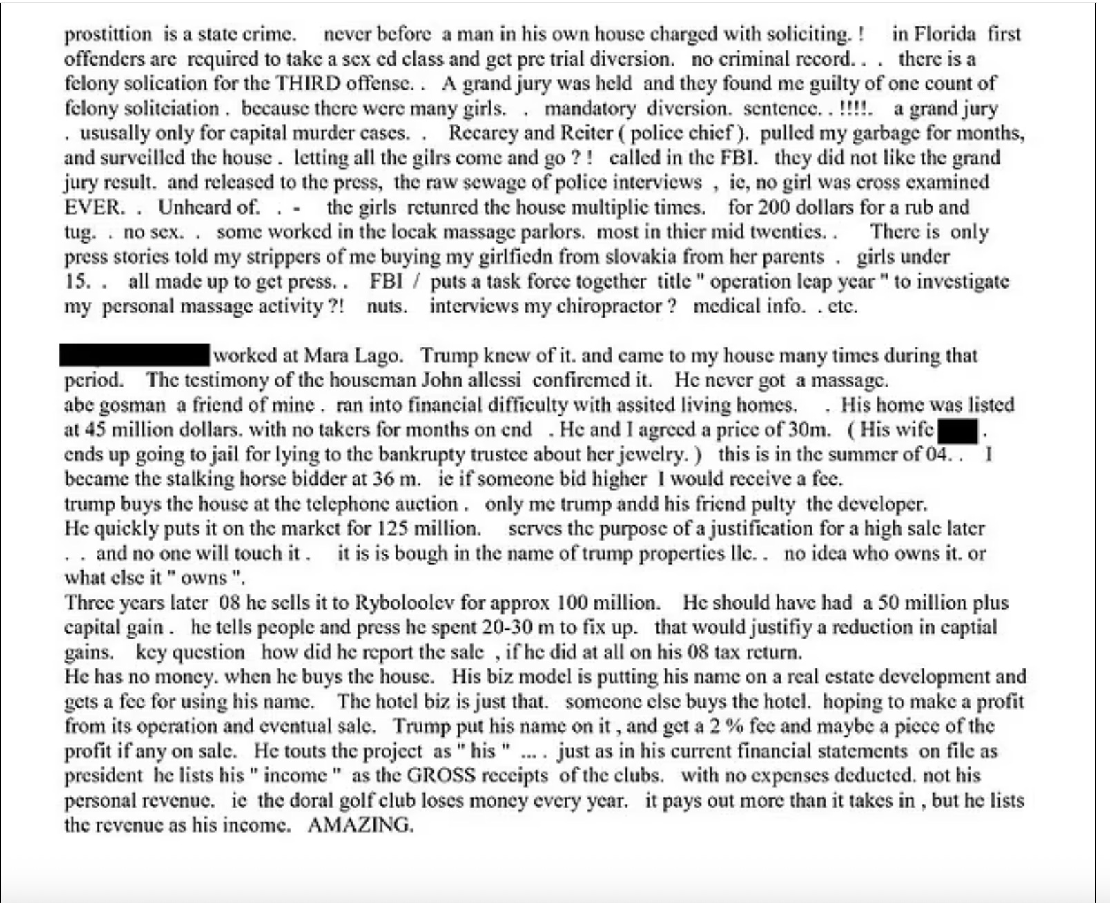 In it he appears to be accusing Trump of tax evasion and/or money laundering (again, with no actual evidence for either).Trump has never talked publicly about the house sale, or gone into any detail as to what caused the rift, only mentioning that he kicked Epstein out of Mar-a-Lago.