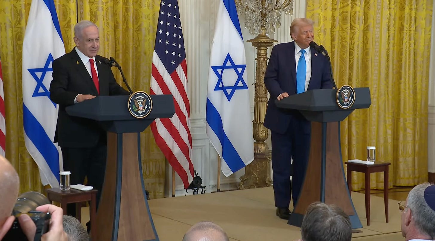 This was all before last night’s press conference with Bibi Netanyahu. My source told me that, like many of you probably, he’d checked out for an hour or so just to have an early dinner, but on re-emerging discovered that we were now possibly going to war: occupying Gaza, forcing 2 million Palestinians out, and rebuilding the place as “the Riviera of the Middle East.”